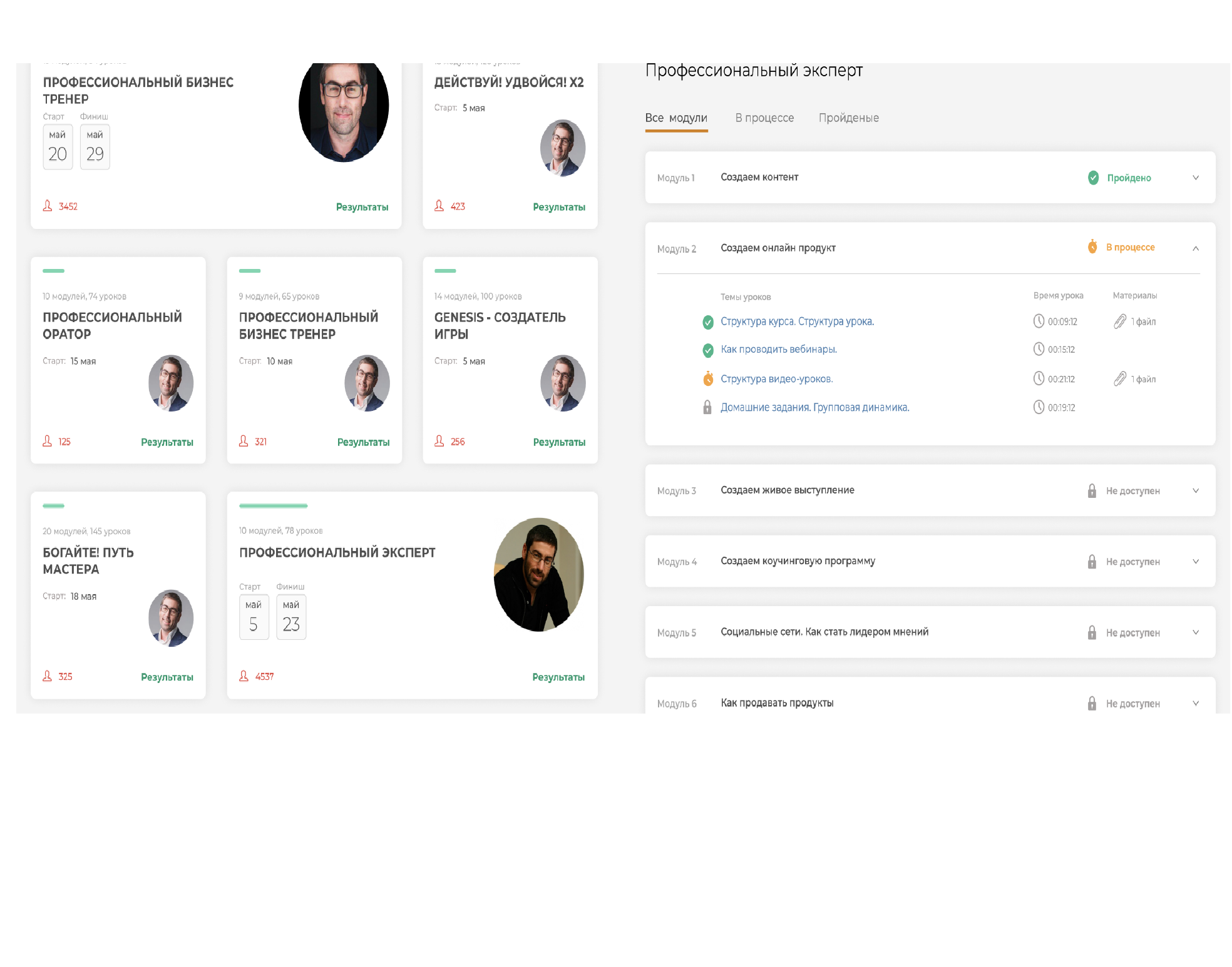 Начинай обучение с любого модуля — от Мастера Обучения до Профессионального эксперта.